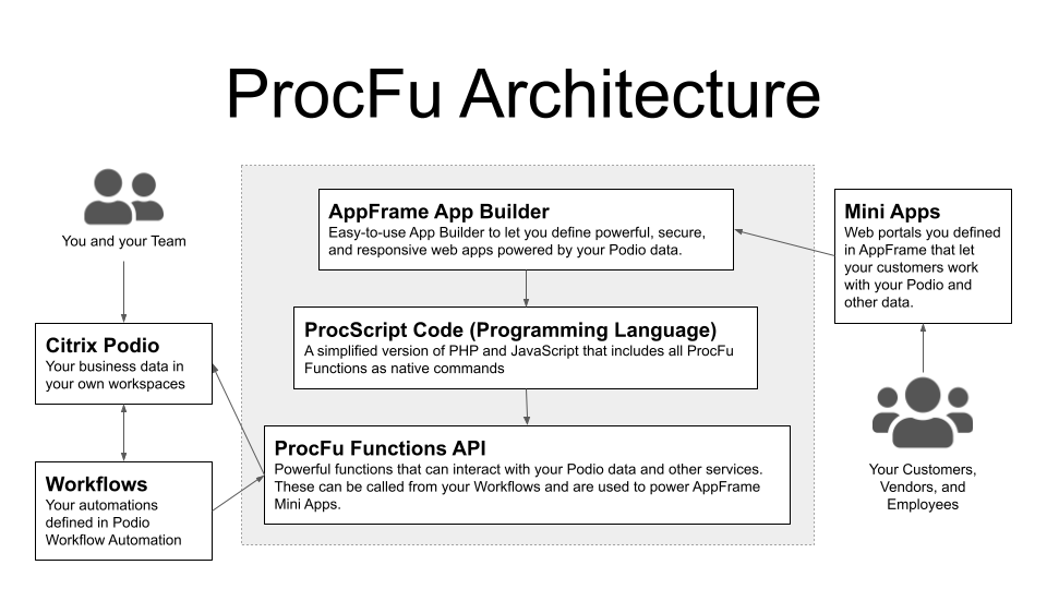It all started with API Functions to add missing features to existing workflow platforms. These functions can be called from Podio Workflow Automation, Zapier, or your own servers.